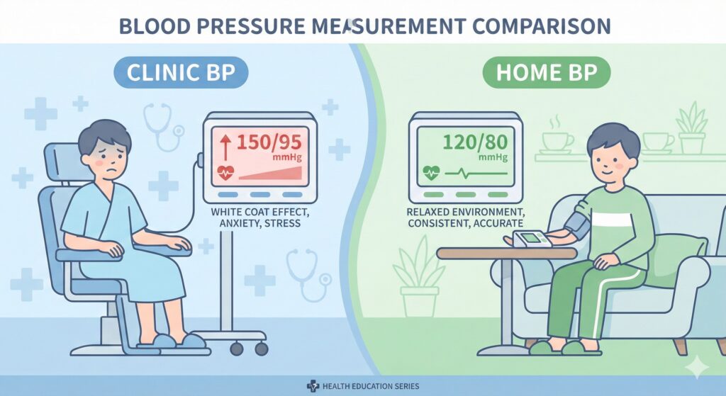 • 脳卒中や心不全のリスクをより正確に予測できる: 家庭で測る血圧は、診察室での血圧よりも、将来の脳卒中や心筋梗塞、心臓・腎臓への負担を強く反映することが証明されています 。